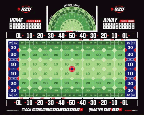 This game has been specifically designed to simulate a full game of real football! From kickoffs to punts, touchdowns, sacks, and even timeouts, Redzone Darts has all of the features necessary to provide an authentic, unique football experience from the comfort of your own home!